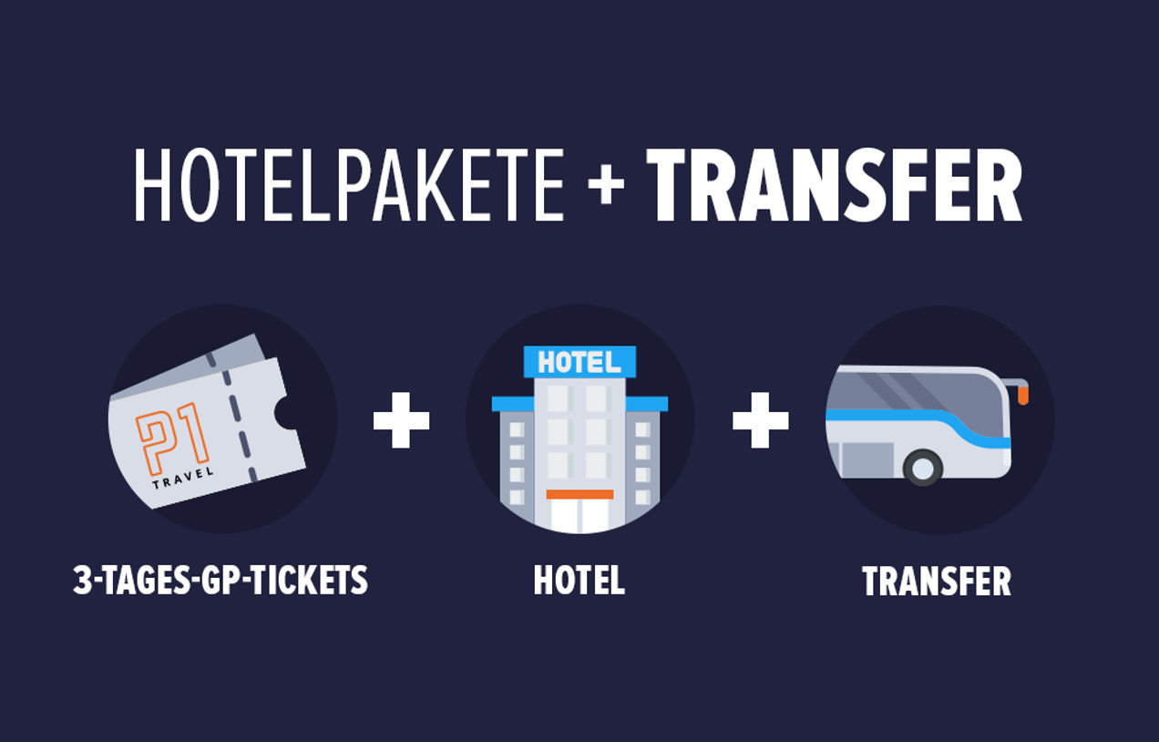 Genießen Sie ein stressfreies Wochenende bei Ihrem Lieblings-Grand-Prix. Unsere Hotelpakete + Transfer beinhalten: